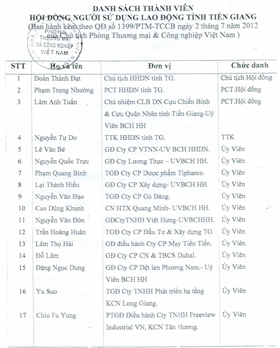 The Employers’ Committee of Tien Giang province is an organization attached to the Businesses Assocation of Tien Giang province under VCCI, which aims to help the employers in strengthening employment relationship in harmony, stability and development of the businesses.