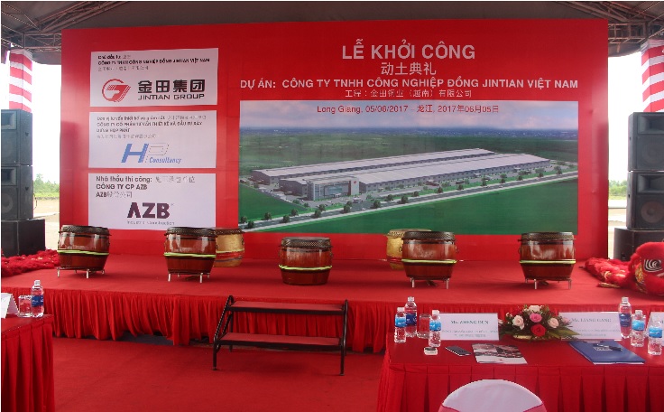 20170605日,金田铜业(越南)有限公司在龙江工业园隆重地举行动土奠基典礼。参与动土典礼有前江省领导及龙江工业园董事长-翁明照、余总经理及工业园区内各企业代表。金田铜业项目总投资金额为4,158万美元、占地面积为10公顷。项目行业为生产有色金属、铜管件、铜管材。